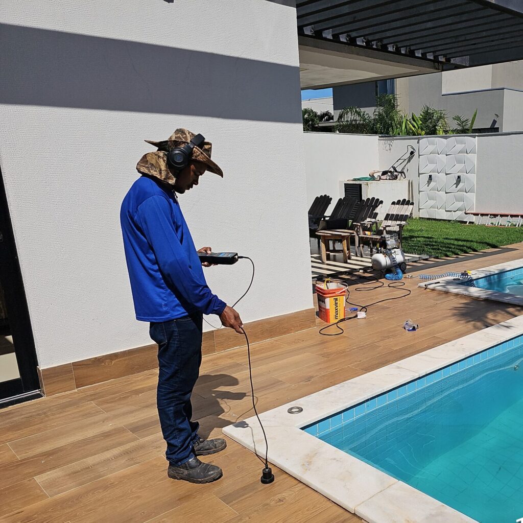 Identificamos vazamentos em piscinas com métodos especializados como hidrofone subaquático, teste de corante, estanqueidade e geofone, assegurando uma detecção rápida e precisa.